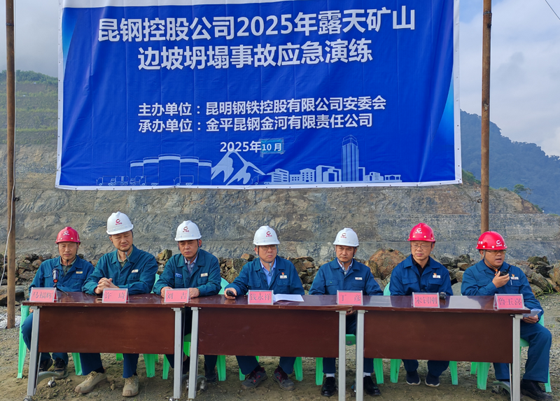 金平昆钢金河公司2025年露天矿山边坡坍塌事故应急演练发表时间:2025-11-05 14:09 为进一步加强应对突发事故的综合指挥能力、快速反应能力、协同作战能力,验证应急预案的可操作性和实用性,预防和减少生产安全事故,保障人员的安全与健康,由昆钢控股公司主办、昆钢金河公司承办、武汉宏信矿冶科工集团有限公司金平项目部协办的露天矿山边坡坍塌事故应急演练,于10月31日上午,在马鞍山露天采场开展。